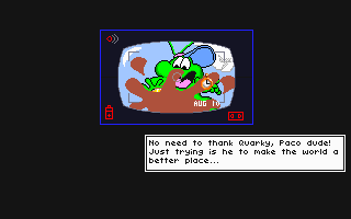 Conclusion : science sans conscience n'est que ruine de l'âme !Un jeu intelligent dont on ne se lasse pas si vite : les tracés sont différents d'une partie à l'autre, et 2300 questions vous défient dans un environnement varié, avec une belle vingtaine de décors peints à la main et une 2D qui n'a pas si mal vieilli.Et comme le niveau de langue est plutôt soutenu, c'est l'occasion d'apprendre l'anglais scientifique et de réviser ses formules de politesse. Du coup, le jeu n'est plus ciblé pour les ados, il devient un vrai programme familial ! Que vous soyez adeptes du système métrique ou des mesures anglo-saxonnes, c'est un titre universel, qui a prévu les deux types de mesures. 25 ans après sa sortie, c'est un titre qui va vous réserver de bonnes surprises. Non seulement les jeux vidéo ne ruinent pas nécessairement le cerveau, mais ils peuvent aider à le façonner.