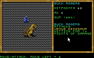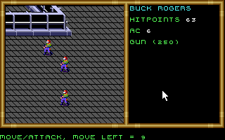 L'organisation du jeu évolue peu pour ce second opus. Vous aurez droit à une équipe que vous verrez évoluer dans une fenêtres. L'équipe proprement dite est représentée en haut à droite de l'écran tandis que la part belle est faite au texte plus évocateur que les graphismes minimalistes et qui font déjà figure de dinosaure en cette année 1992. Buck Rogers Matrix Cubed est l'un des derniers jeux Gold Box qui fut publié par S.S.I. Après lui, ce sera l'heure d'Unlimited Adventures pour permettre aux joueurs de créer leurs propres aventures.