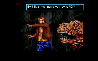 Le jeuIl y a des fois, on devrait rester couché car... En une journée, l'insouciance quitte votre vie. Pourtant, rien ne vous avait préparé à un tel drame. Après tout, vous étiez le beau gosse de service promis à épouser Jessica, dont les formes étaient aussi avantageuses que celles de Jessica Rabbit. Il n'aurait donc pas dû y avoir de lézard... ça c'est sans compter votre meilleur ami, sorte de "géo trouve tout" qui a ouvert par mégarde une faille temporelle. Voilà qui met à mal le plan d'invasion des envahisseurs ressemblant fortement aux Daleks du Dr. Who, soit des robots au design de poubelles. Et surtout votre vie bien réglée, car les rustres enlèvent devant vous Jessica. Avec l'aide de votre ami, vous sautez donc sur un scooter transformé en vaisseau spatial temporel. La suite ? Évidemment, rien ne se passe comme prévu, puisque vous atterrissez dans un équivalent de Jurassik Park avec des hommes en pagne peu accommodants !