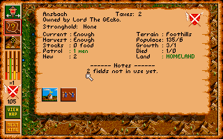 Bienvenue dans les années 90 et la stratégie au tour par tour. Régulièrement, les développeurs proposaient des simulations plus ou moins historiques dont le but était invariablement le même : finir tout en haut de la pyramide. En l'occurrence ici, votre but est est triompher de vos adversaires dans un jeu de stratégie ultra classique. Brian Vodnik, son créateur, s'était en fait contenté de prendre le moteur de jeu de Vikings 2 : Field of Conquest, et de l'adapter à une carte de l'Allemagne médiévale. Le logiciel garde donc les bons et les mauvais aspects de son clone. D'un côté, Kingdoms of Germany est toujours un bon représentation des jeux de stratégie de l'époque. De l'autre toutefois, le gameplay assez poussif (si vous n'avez pas joué aux jeux d'alors), les graphismes et les sons sont dans une petite moyenne. La carte est vaste et vous offrira une bonne rejouabilité.