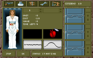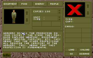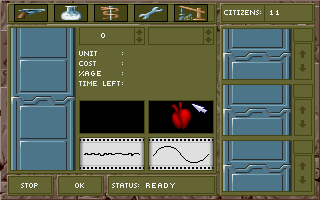 Un jeu de stratégie peu pousséSurvival est un jeu de stratégie faussement en temps réel. Il faut comprendre par là qu'au moment où sortent Command and Conquer ou encore Warcraft, le jeu fait pâle figure. Sans doute développé avec peu de moyens, il présente des mécanismes de jeu de stratégie assez peu élaborés. On notera un bel arbre technologique mais qui se résume trop souvent à armer ses soldats pour plus d'efficacité dans la guerre qui les oppose aux mutants. Il n'y a pas vraiment de choix cornélien entre les besoins de la communauté et ceux qu'exige la guerre. Vous investirez donc dans la défense de vos bases en créant des soldats et quelques unités-supports. C'est faible, même si le jeu s'anime un peu dès que les options technologiques sont plus nombreuses.