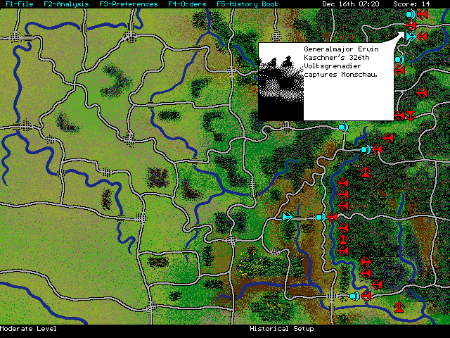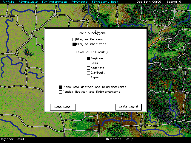 Le jeuCassant légèrement les codes des wargames de l'époque, le titre apparaît visuellement différent. Il tranche avec des productions plus ternes comme Panzer Battles. La représentation du terrain est bien meilleure et les unités traditionnellement représentées en forme de carrés sont ici des flèches. L'ensemble fait penser à une carte que l'on peut voir dans les anciens manuels d'histoire. La chose est volontaire car le créateur du jeu voulait ouvrir le wargame à un plus grand nombre. L'effort est louable dans la mesure où de nombreux wargames se ressemblaient tous et les innovations étaient vraiment très faibles. Il y avait besoin d'un renouveau.