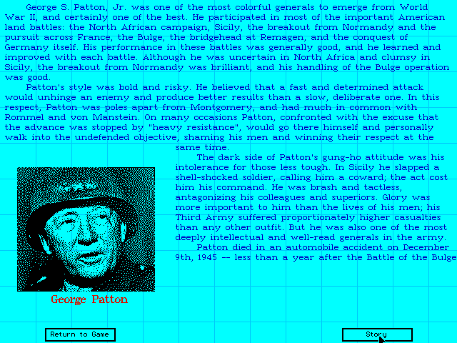 S'il y a bien une période qui a inspiré les créateurs de wargames, c'était la Seconde Guerre Mondiale. A vrai dire, on ne compte plus les innombrables titres qui en font leur sujet principal. Ne voulant sans doute pas prendre de risques, le créateur de Patton Strikes Back - The Battle of the Bulge a choisi l'une des offensives les plus célèbres de la seconde guerre mondiale : la bataille des Ardennes, où s'illustra tout particulièrement le général Patton. Celui-ci réussit ce que tout le monde pensait impossible :envoyer six divisions sous son commandement qui stationnaient aux environs de Sarrebruck pour les repositionner deux jours plus tard près de Bastogne. Ce coup d'éclat contribua puissamment à casser la dernière grande offensive allemande.