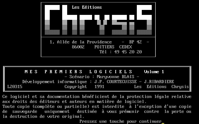 Les éditions Chrysis avaient pour spécialité de produire des jeux éducatifs basiques au graphisme simple et au son limité. Mes premiers logiciels n'y font pas exception. Hormis, les dominos, le reste des jeux n'a pas grand intérêt.