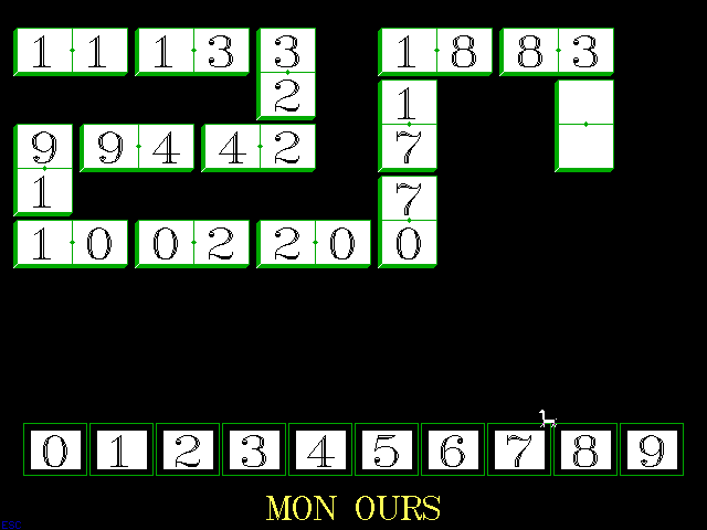 FonctionnementPensez à DOSBox, l'émulateur gratuit des vieux jeux DOS. Une fois installé sur votre ordinateur, autorisez la création d'un raccourci sur votre bureau Windows. Puis, faites un glisser/déposer du fichier DOMINO.EXE sur le raccourci de DOSBox. Le jeu se lance. Appuyez simultanément sur Alt gr et Entrée pour obtenir le plein écran. Bon jeu !