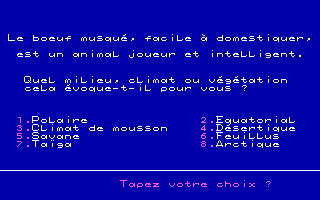 Ici, c'est donc le programme le plus junior, avec des activités clairement destinées à des enfants de onze-douze ans qui vous est proposé. Marianne Rougeulle a veillé à ce que le programme soit centré sur la faune et la flore, les climats et les paysages, afin de coller au programme de géographie de l'année 1987 (à une époque où les pauvres profs d'histoire-géographie, obligés d'enseigner une matière qui n'est pas la leur, devaient en plus s'atteler à la climatologie ou la géologie !).