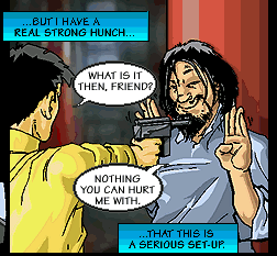 Le jeu est agréable et distille des moments de fun, avec des scènes de Kung-Fu dignes d'un Monthy Python à la chinoise. J'ai parfois pensé à Shaolin Soccer pour le ton et les situations cocasses. J'ai aussi pensé à Jackie Chan...Attention aussi à la complexité de l'intrigue, renforcée par les multiples identités du héros, et par les intentions difficiles à cerner des alliés qui l'aident dans sa quête et qu'on prend pour des ennemis au début. Mais on arrive au bout des 20 planches en moins de deux heures en épluchant tout: c'est très frustrant ! Pour une mention "à suivre" en plus ! Parce que l'histoire ne sera pas finie au terme des 20 planches, et c'est bien là que le bât blesse.