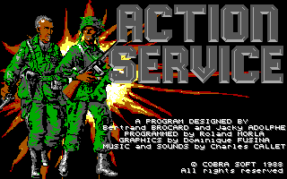 Techniquement, le titre est de bonne facture pour cette année 1988. Doté de graphismes en EGA16 couleurs et d'animations correctes, Action Service est agrémenté d'un éditeur, histoire de rallonger quelque peu de la durée de vie d'un titre par essence très périssable.