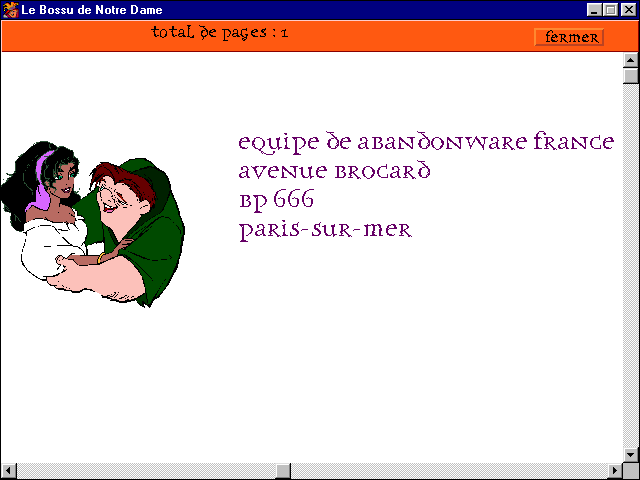Selon un rituel désormais bien établi, l'enfant va pouvoir jouer avec l'imprimante des parents, après avoir jonglé avec les Gargouilles, Esméralda ou le Bossu, constituant des enveloppes, des cartes d'invitation ou des marque-pages. On fait vite le tour du logiciel, et on pourra regretter l'absence de cinématiques revisitant quelques extraits emblématiques du film éponyme. Mais on pourra tout de même se réjouir de ce que les écrans aient été améliorés depuis les premiers titres, avec des graphismes plus fins et des choix plus amples en matière de polices et de bordures. Un titre qui réenchantera les souvenirs de la nouvelle génération de rétrogamers, ceux qui ont connu le CD-ROM et Internet mais pas les disquettes 3.5".