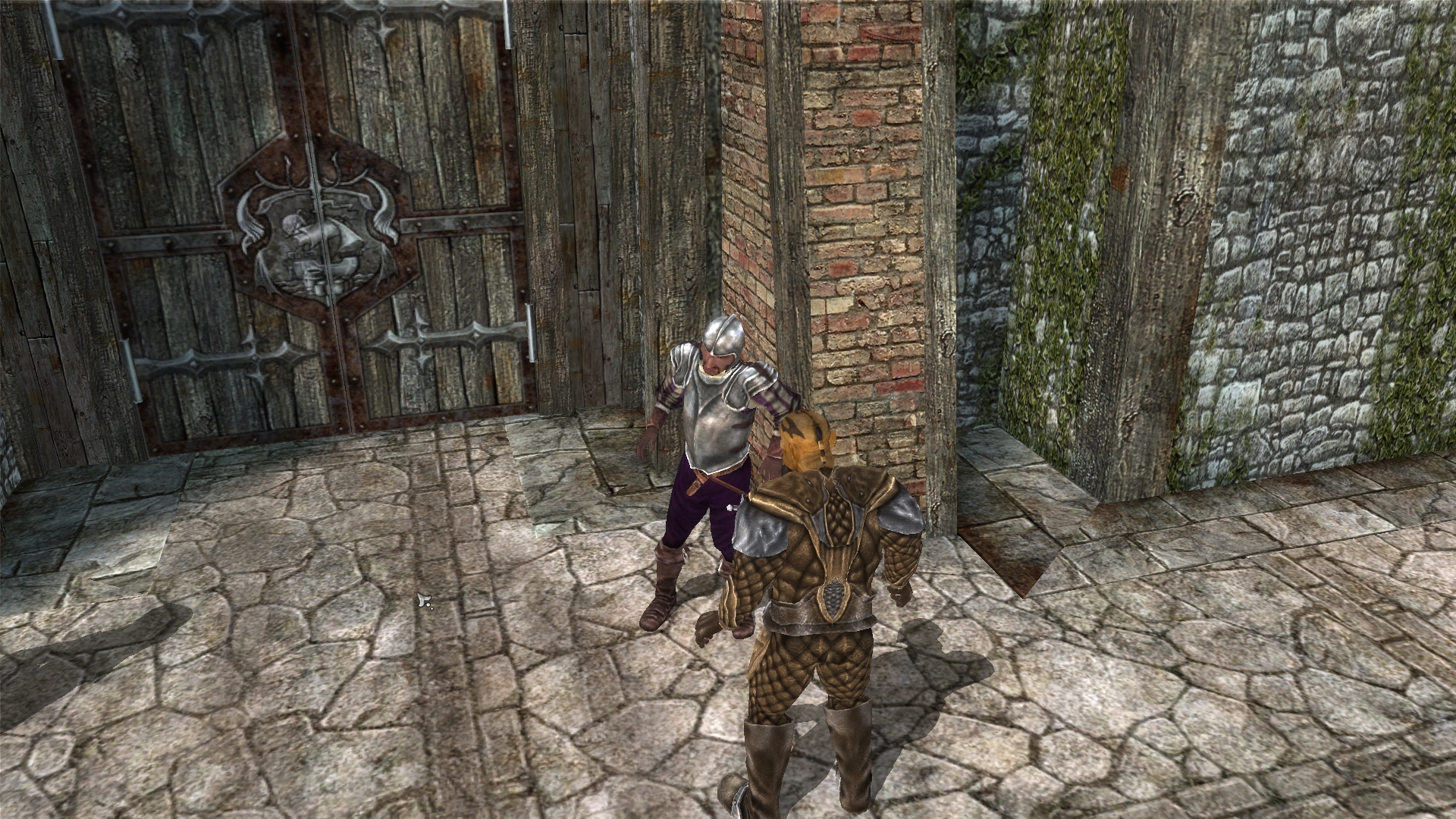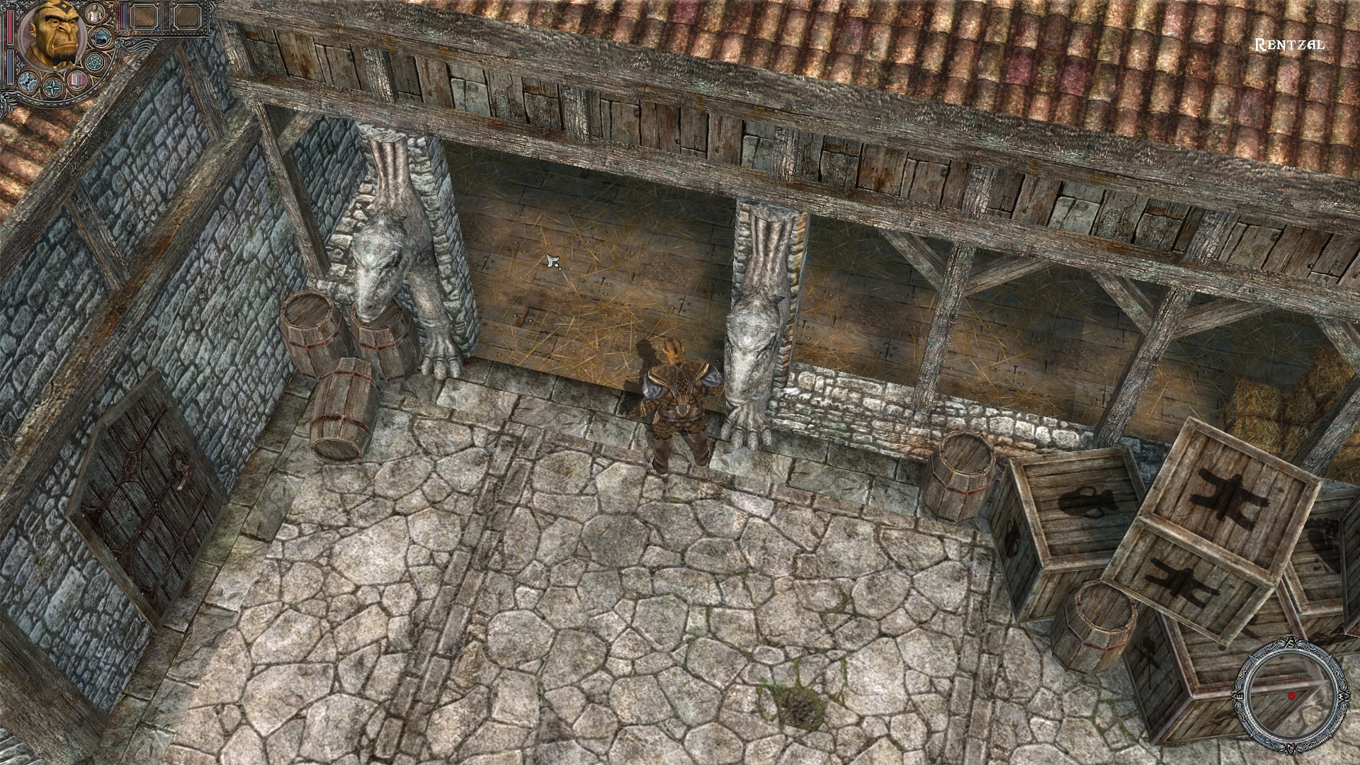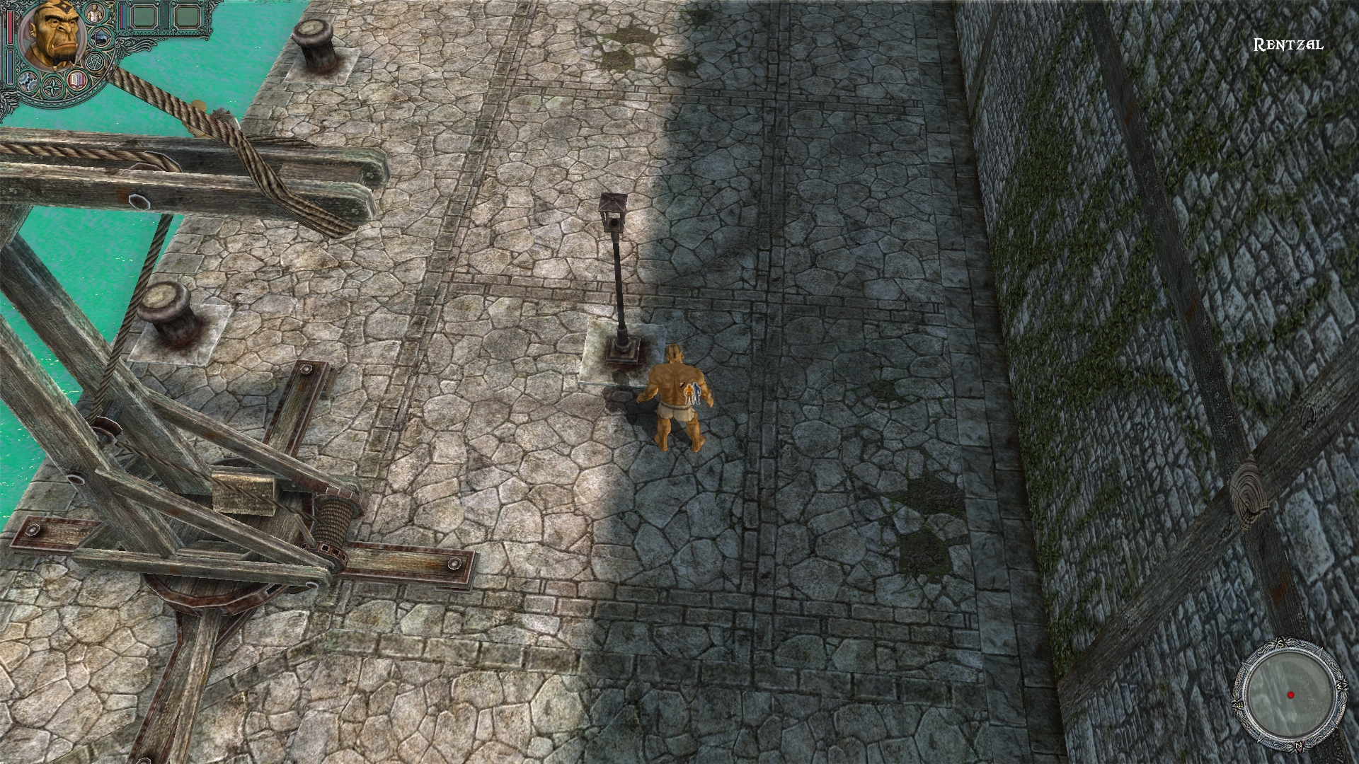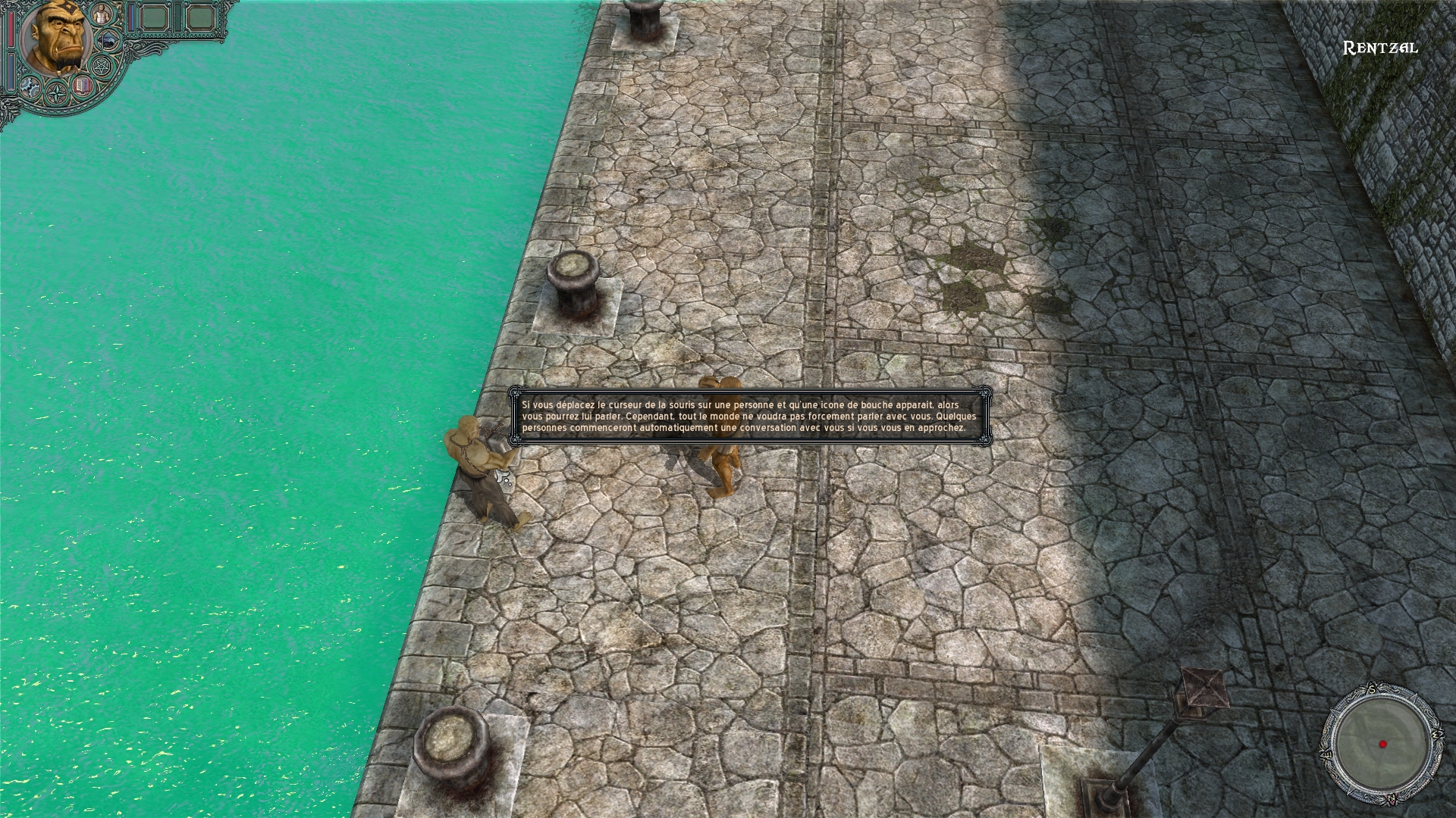 The Elder’s (dumb) ScrollsL’histoire de World of Chaos peut se résumer en une carte postale : nous incarnons Skandar Graun, un demi-orque en quête de vengeance et chargé par le Dieu de la destruction local de retrouver un artefact perdu. La cinématique d’introduction nous permet d’ailleurs de profiter de l’incroyable doublage français, avec une mention spéciale à l’elfe de la cinématique, dont la doubleuse semble exsangue de toute forme de motivation et qui me rappelle fortement la voix féminine des annonces de la SNCF. Notre héros se fait balancer manu militari d’un navire, et arrive à la nage dans la ville de Rentzal, dénudé, et c’est ici que l’on prend enfin le contrôle du personnage.