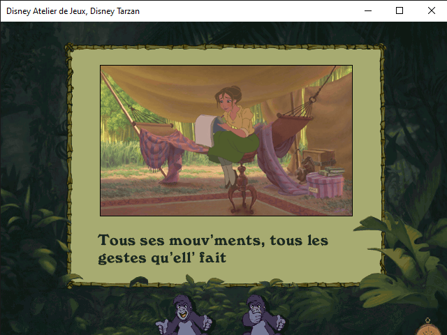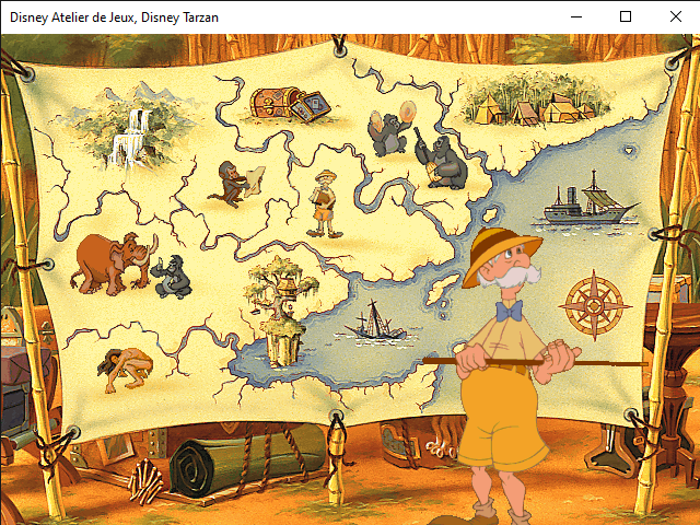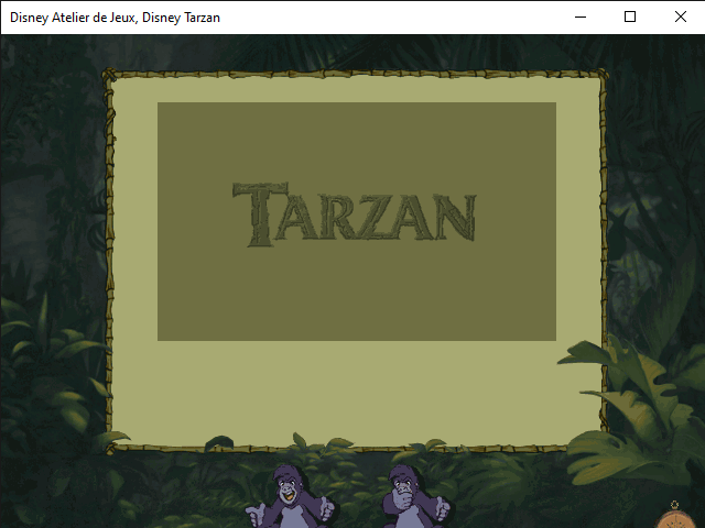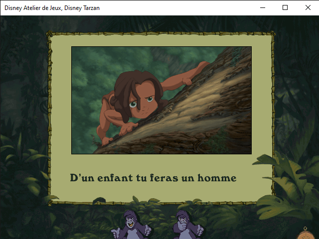 Bienvenue dans la classe d'Archimede PorterLa fin de l'année 1999 se termine avec l'événement Disney : le long-métrage Tarzan est aussi retentissant que la sortie d'Aladdin (1992) ou du Roi lion (1994), et les produits dérivés pleuvent en cette fin de décennie. Parmi tous les goodies , ce sont les jeux vidéo qui portent le chapeau des préférences, et la Playstation en fait le produit phare pour les fêtes de fin d'année. L'atelier de jeux : Tarzan reprend les personnages et les décors, et prolonge la magie du long-métrage avec cette grande cour de récréation où le ludique l'emporte sur l'éducatif.