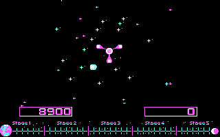 L'écran affiche le total des points santé à gauche, et le total des points scorés à droite. Et le parcours de la fusée augmente sur un segment gradué en dessous de l'écran de jeu. A la souris, au clavier ou au joystick, le jeu est assez facile, du moment que vous aurez ralenti les cycles.