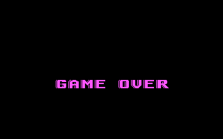Et le jeu commence, avec une vision de la fusée en quatre couleurs CGA. Vous devez éviter la collision avec des météorites et récolter des bonus santé et des bonus rouges : huit sont nécessaires pour atteindre la fin du niveau.