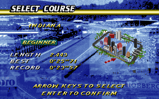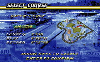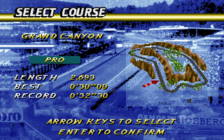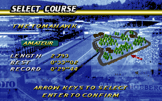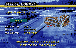 Dans ce dernier, on retrouve les habituels réglages du Son (volumes, jukebox), des graphiques (texture, détails, densité, profondeur et VGA 320x200 ou SVGA 640x480), des contrôles (clavier ou joystick) et enfin les réglages pour le multi-joueurs en réseau (menu Multiplayer Race pour s'affronter en IPX, Serial ou Dial modem), mode de jeu que je n'ai pas testé.