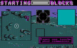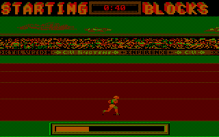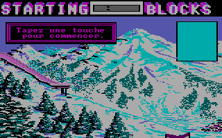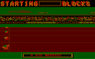 3, 2, 1... Foncez !Starting Blocks comme son nom le laisse supposer est un jeu de sport typique de la fin des années 80. Avec un coloris limité et des sons répétitifs, il vous offre la possibilité de vous lancer dans une simulation sportive. La différence avec tant de softs à l'époque tient au choix des épreuves : saut à ski, saut en parachute qui viendront compléter le 400 mètres et le cyclisme sur piste. Le gameplay est typique de ces années-là à l'image de Numéro 10 ou encore de Microsoft Decathlon pourtant sorti bien avant. A bien des égards, le titre a vieilli et suscitera la nostalgie de ceux qui ont connu les coloris CGA/EGA et qui ont envie de se lancer dans un jeu léger et sans prétention.