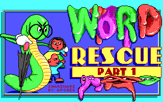 C'est coloré !Dans les années 80 et 90, les jeux pour les enfants se repéraient de loin. Ils utilisaient une palette graphique colorée, voire criarde, et des graphismes généralement plus simples que les autres jeux de même catégorie pour adultes. Word Rescue ne fait pas exception à la règle en proposant des graphismes enfantins et une musique façon synthé années 80. Vous choisissez un avatar, garçon ou fille, que vous allez diriger. Après avoir donné un nom, place à l'action. Ce petit shareware est l'exact pendant de Math Rescue mais pour l'orthographe. Vous êtes dans un jeu de plate-forme dont la difficulté varie suivant l'âge que vous choisissez (commençons par les 4-7 ans). Vous récoltez des livres qui vous donnent des points mais votre objectif est d'associer une image à un mot. Comme ce shareware est dans la langue de Shakespeare, cela rajoutera une petite dose de difficulté et vous obligera à réviser les bases. L'ensemble est simple et assez efficace. C'est une bonne activité de révision avant la rentrée.