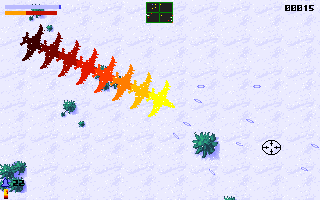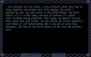 Tout est noir, c'est sans espoirOn le voit souvent dans les films et plus encore dans les jeux vidéo. Dès qu'il s'agit de parler du futur, rien ne va et Zone 66 ne fait pas exception. Et pour cause ! Une longue introduction en anglais nous campe le décor. Le monde a sombré dans la barbarie et vous êtes au milieu de la tourmente. Un ancien pilote hautement décoré vient vous avertir, vous l'ancien soldat, qu'une bombe nucléaire est sur le point de frapper votre ville, là où habitent votre femme et votre enfant. A peine êtes-vous arrivé au sommet de la montagne surplombant la ville que vous assistez impuissant à la destruction de votre foyer et de votre famille. L'heure de la vengeance a sonné et vous allez faire ce que vous savez faire le mieux : voler !