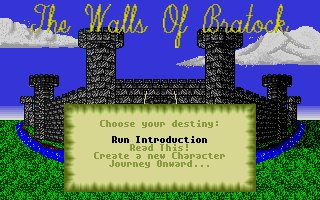 Œuvre d'un jeune programmeur de vingt ans qui y a consacré plus de deux ans de travail et de réflexion, Walls of Bratock m'a agréablement surpris. Le jeu se déroule au sein d'un univers détaillé, conçu avec beaucoup de soin et un souci remarquable de richesse et de cohérence des détails. Bien sûr, la réalisation rappelle plus Ultima V qu'Ultima VIII, son contemporain, mais c'est bien fait et les moyens utilisés ne sont pas si ridicules que ça pour l'époque, d'autant plus que les joueurs potentiels n'avaient pas nécessairement des ordinateurs de dernière génération. Et au fond, nous les aimons bien ces vieux jeux auxquels on ne pouvait jouer qu'après avoir lu attentivement un épais manuel et appris toutes sortes de commandes... Alors ? Alors oui, j'ai pris plaisir à essayer Walls of Bratock et je me propose d'y rejouer à l'occasion et même d'essayer de le terminer. Sans cheat et sans hints ! (Hé oui, malheureusement, ce jeu écrit par un francophone n'est qu'en anglais...)