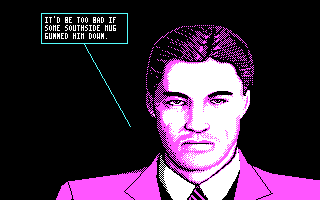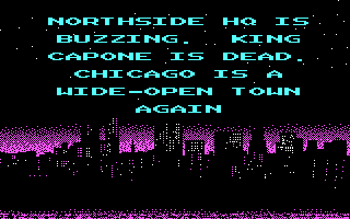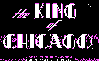 Sur cette trame narrative convenue mais assez riche, les développeurs ont imaginé un jeu d'aventure à choix multiples. La chose n'est pas nouvelle dans les années 80 mais les machines commençaient à être plus puissantes, autorisant une histoire pleine d'images plus longue. C'est exactement ce qui se passe ici avec The King of Chicago. Utilisant un coloris limité mais plein de charme, il est difficile de résister au titre. Tout juste regrettera-t-on l'absence d'alternatives à la violence proposée mais dans ce genre de scénario, cela était-il possible ?