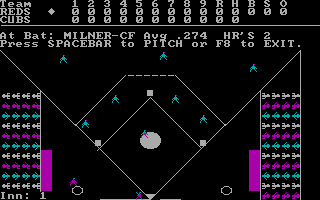 Tout droit sorti de l'année 1987, la société Keypunch Software nous gratifiait d'un jeu de sport où vous incarnez une équipe de baseball. Votre objectif ? Remporter le match. Les jeux de baseball et ou bien encore du football américain ne se sont jamais bien vendus du côté européen.La cause en est simple : les joueurs ne maitrisent pas les règles de base de ces sports et l'intérêt est globalement faible. Pourtant sorti en 1987, le titre est très en retard techniquement et se rapproche plus de Decathlon que des titres plus chatoyants comme Kings of the Beach. L'ensemble est à réserver aux inconditionnels du baseball qui maitriseront le minimum de règles considérées comme acquises ici et/ou aux curieux du rétrogaming. Au total, 6 équipes sont disponibles et 2 joueurs peuvent s'affronter.