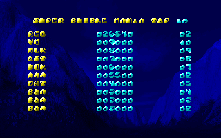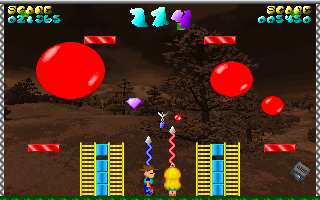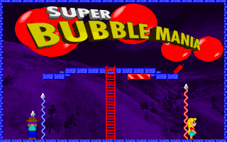 Un clone de PangBienvenue dans l'univers de Super Bubble Mania, un shoot vertical à la façon de Pang : seul ou à deux, vous devez éliminer des ballons qui se déplacent au-dessus de votre tête, à l'aide d'un harpon qui tire vers le haut. Lorsque vous crevez votre ballon, il se subdivise en ballons plus petits et plus véloces, et ainsi de suite jusqu'à ce que les plus petits finissent par retomber et rebondir dangereusement. Vous pouvez vous déplacer latéralement avec votre clavier, et des commandes différentes permettent aux deux joueurs d'utiliser simultanément le même clavier.