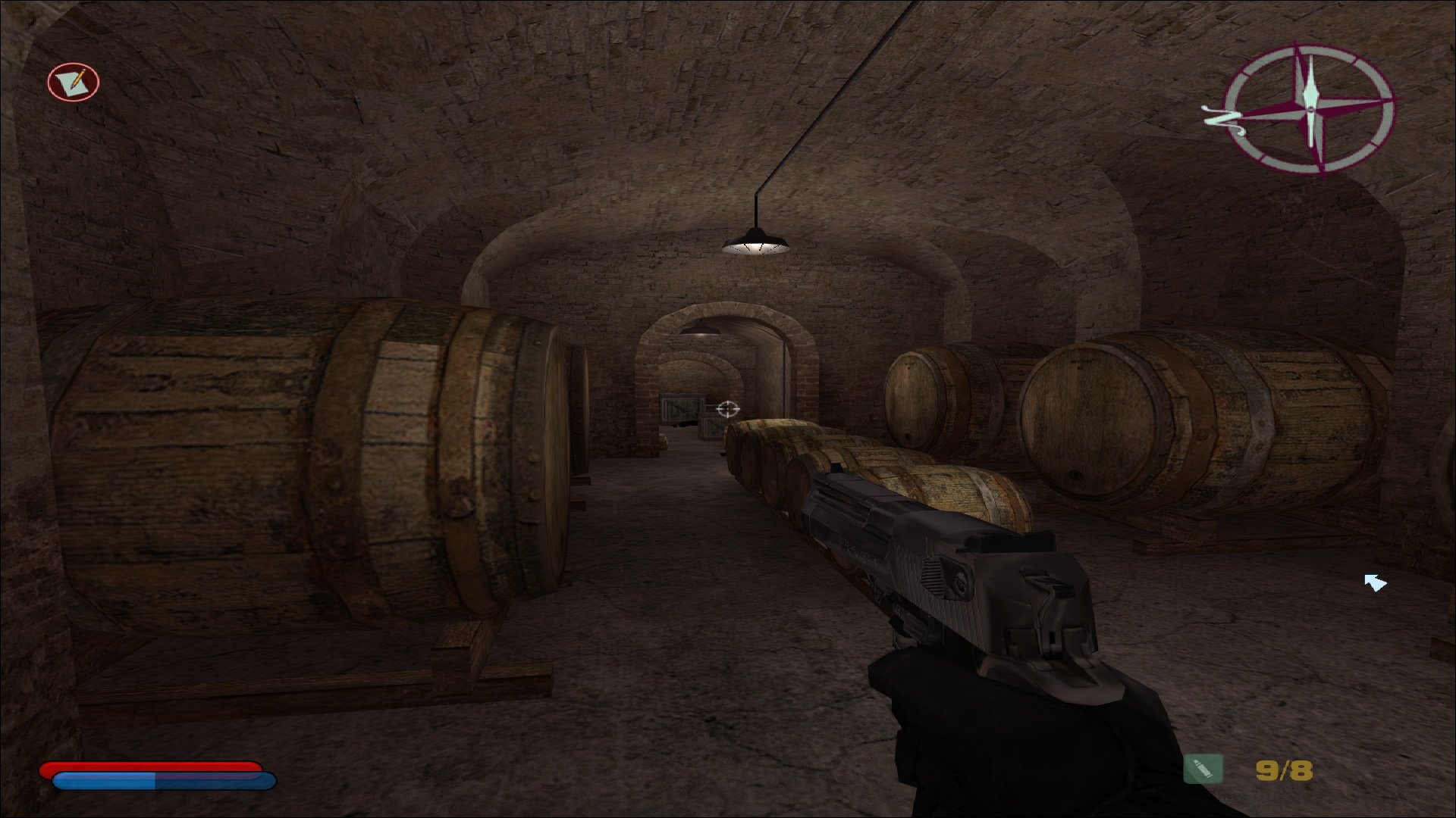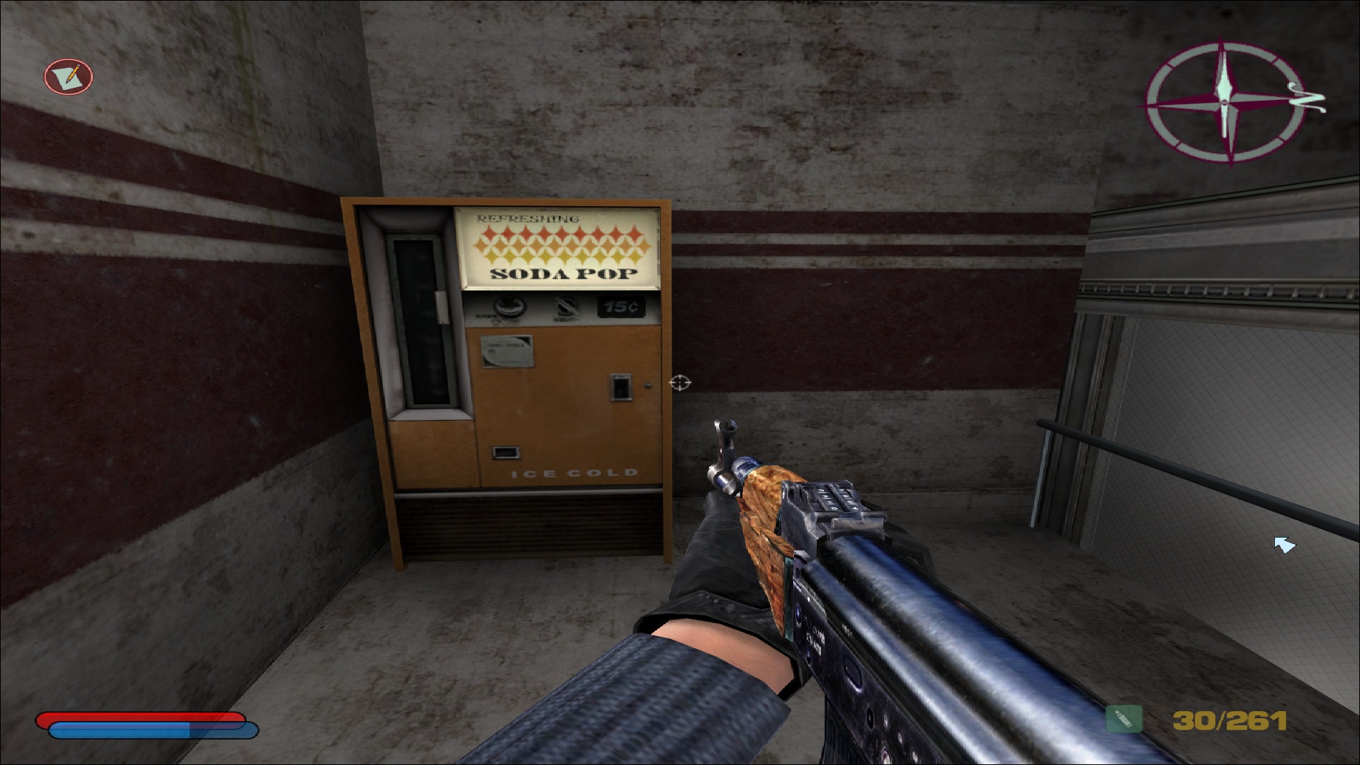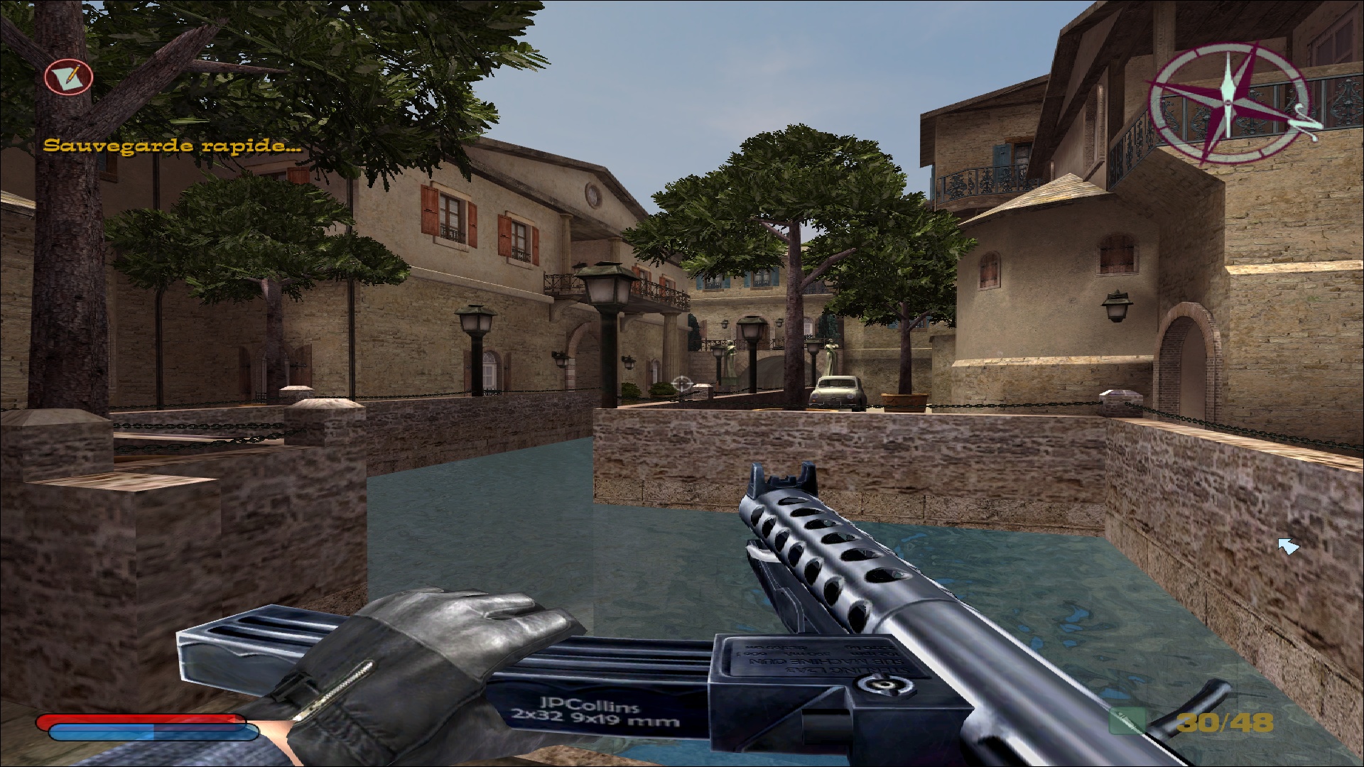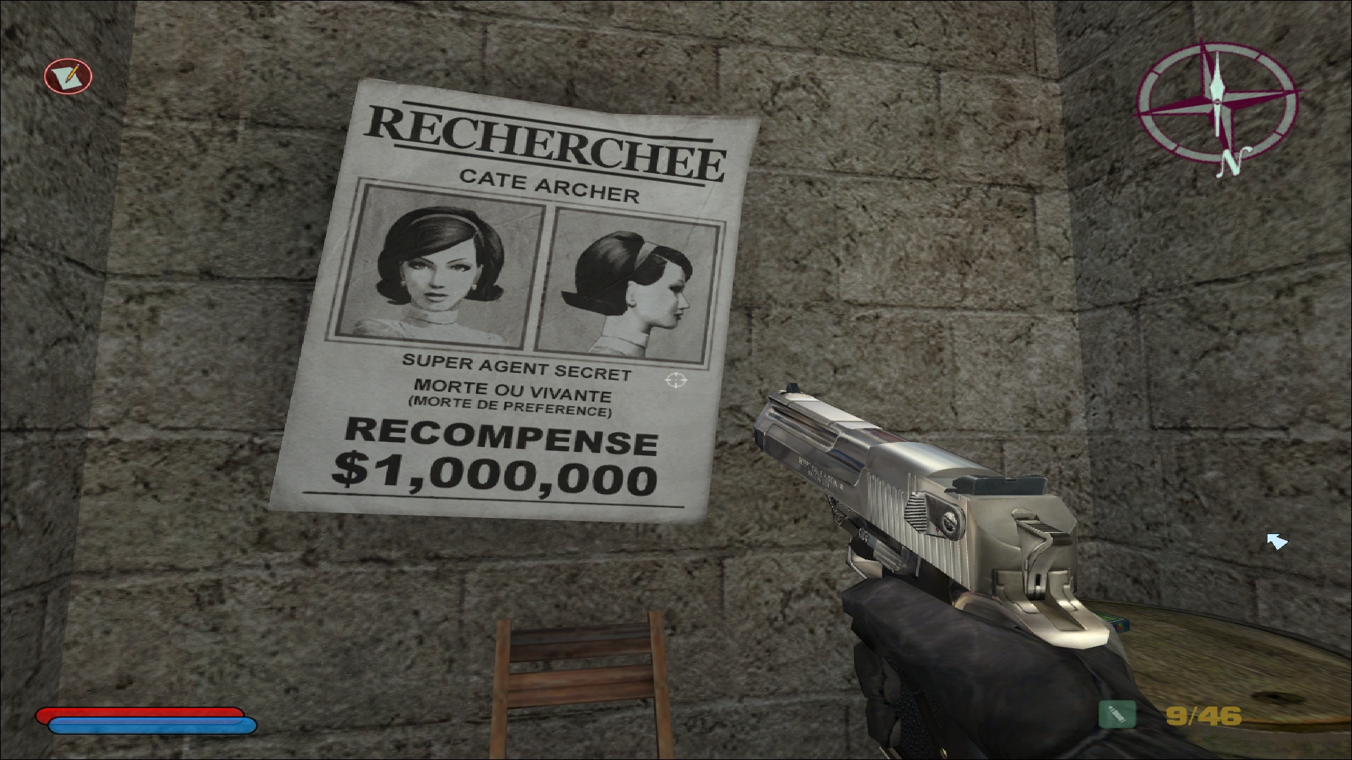Côté difficulté, le joueur a encore affaire aux quatre modes; facile, normal, difficile et impossible, comme dans les jeux principaux. Ce test a été réalisé en difficulté normale, et effectivement il n'aura pas été extrêmement compliqué d'en arriver à bout, même si quelques game over viennent ponctuer l'aventure, notamment lorsque les ennemis arrivent en nombre et nous prennent à revers. Le boss final est lui également assez abordable, et on ne s'arrachera donc pas les cheveux sur ce titre pensé pour convenir à l'ensemble des amateurs du 10e art. Parlant des intelligences artificielles, celles-ci sont évidemment héritées de NOLF 2, et font preuve d'une relative intelligence plutôt rare et agréable pour l'époque. Les ennemis peuvent se couvrir, tirer par dessus leur couverture, changer de position lorsqu'ils se font toucher, et comme évoqué précédemment naviguer dans le niveau pour prendre le joueur par derrière, ce qui est assez remarquable pour un jeu de cet âge.