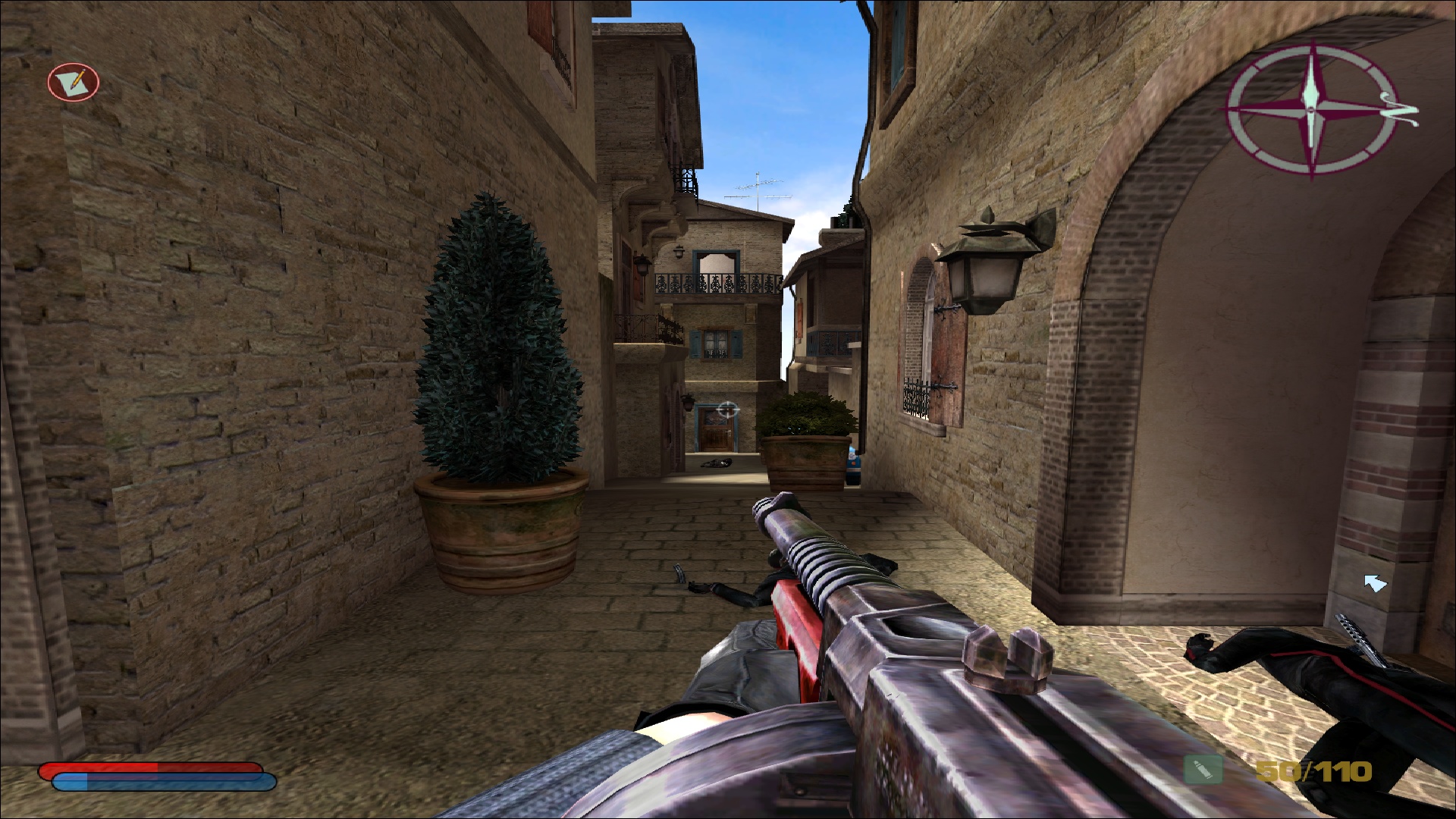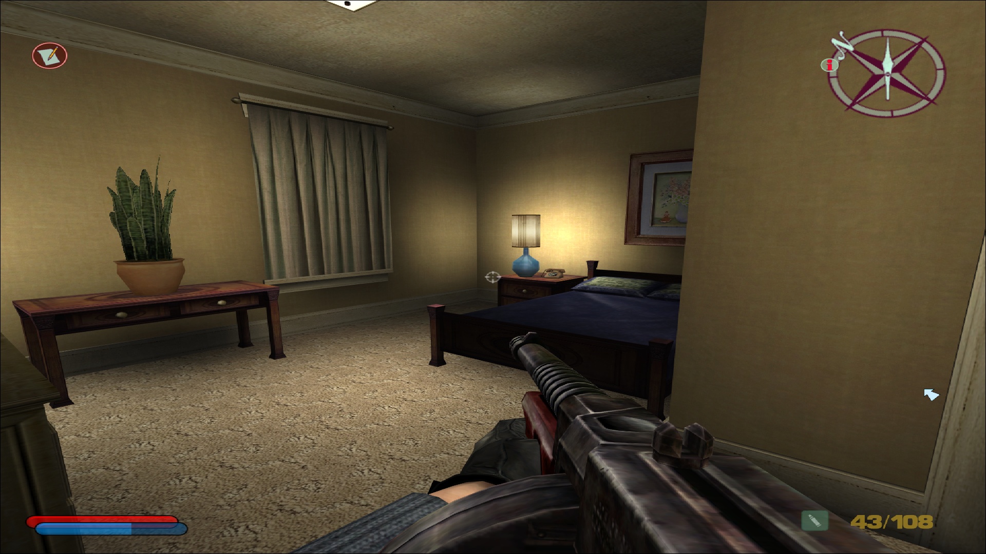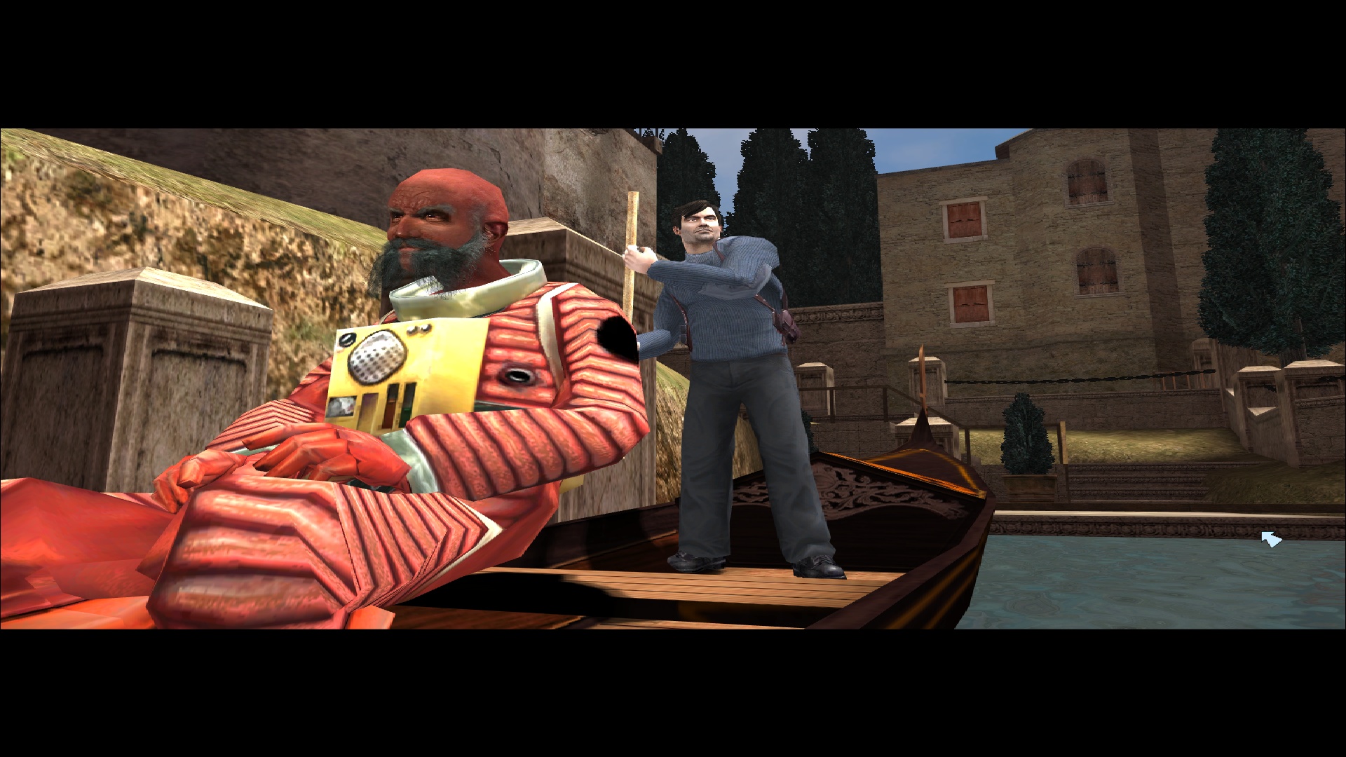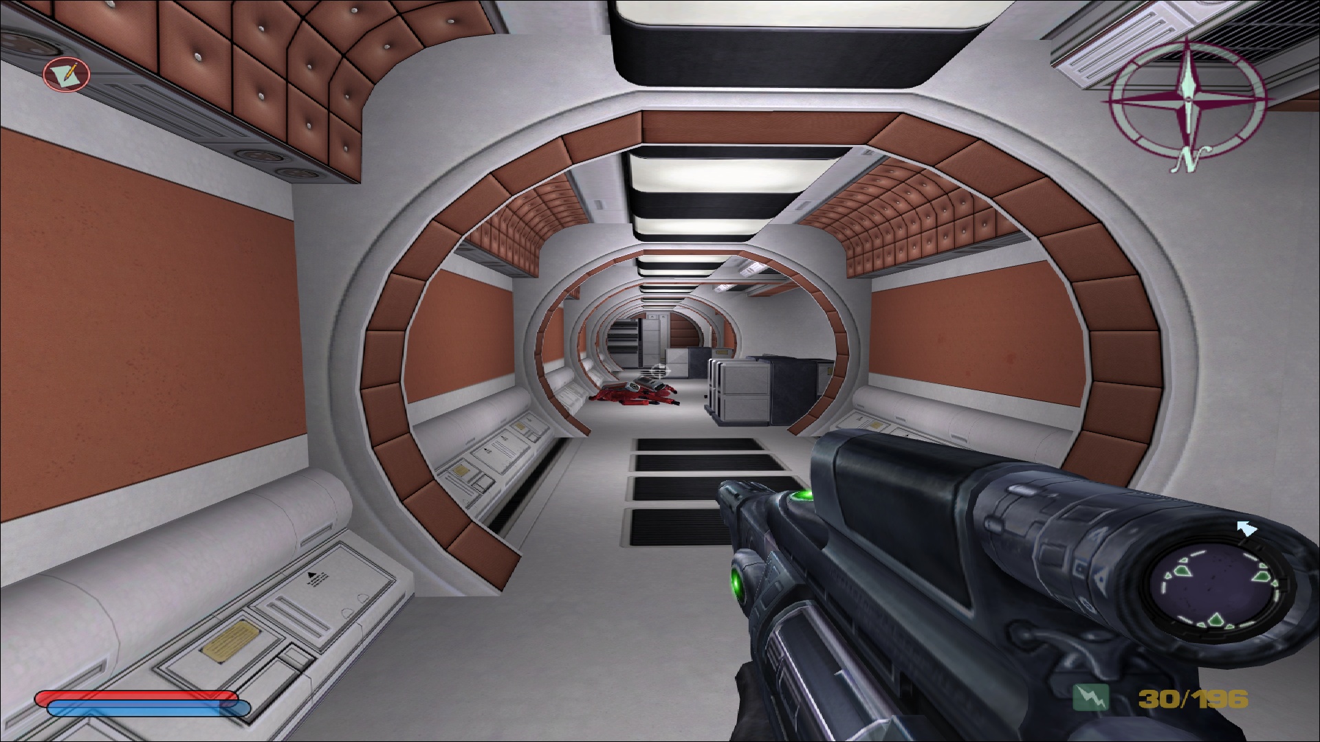 Côté difficulté, le joueur a encore affaire aux quatre modes; facile, normal, difficile et impossible, comme dans les jeux principaux. Ce test a été réalisé en difficulté normale, et effectivement il n'aura pas été extrêmement compliqué d'en arriver à bout, même si quelques game over viennent ponctuer l'aventure, notamment lorsque les ennemis arrivent en nombre et nous prennent à revers. Le boss final est lui également assez abordable, et on ne s'arrachera donc pas les cheveux sur ce titre pensé pour convenir à l'ensemble des amateurs du 10e art. Parlant des intelligences artificielles, celles-ci sont évidemment héritées de NOLF 2, et font preuve d'une relative intelligence plutôt rare et agréable pour l'époque. Les ennemis peuvent se couvrir, tirer par dessus leur couverture, changer de position lorsqu'ils se font toucher, et comme évoqué précédemment naviguer dans le niveau pour prendre le joueur par derrière, ce qui est assez remarquable pour un jeu de cet âge.