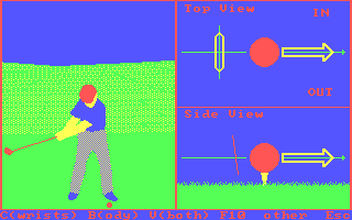 Voilà une maxime de Jack Nicklaus qui pourrait seoir à ravir à ce jeu de golf. Sorti en 1986 sur de nombreux supports, le jeu avait eu droit à une conversion sur PC qui, l'on se doute, était inférieure à celle d'Amiga distribuée par Interplay. Pour autant, le titre a pris le meilleur des machines de l'époque. Si le rendu est typique du début et du milieu des années 80, il est rétrospectivement sympathique. Championship Golf vous met dans la peau d'un joueur (pas d'une joueuse) de golf. Votre but est simple : réussir le meilleur parcours possible à Peeble Beach. Peeble Beach, c'est un endroit au centre de la Californie dédié à la petite balle blanche et qui abrite des parcours de golf parmi les plus célèbres des U.S.A. Pour en revenir au jeu, votre tâche principale est de choisir votre fer et de déterminer ensuite la direction dans laquelle frapper. Il s'ensuit une animation très fluide du personnage. La suite ? Elle dépendra de votre adresse.