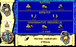 Khalaan est de ceux-là et c'est bien ainsi. Car Khalaan est tout bonnement l'un des meilleurs jeux de stratégie de ces années-là. Certes, il n'innove pas. On se trouve dans un logiciel pré-4X. Il faut entendre par là avant l'ère des Exploration, Expansion, Exploitation et Extermination. Car ici, la carte vous est donnée dès le départ à l'image d'un Defender of the Crown auquel il pourra être plus apparenté. Mais ici, nous nous trouvons dans un royaume d'Arabie imaginaire. N'espérez pas une once d'histoire car vous pourrez faire appel à la lampe magique !