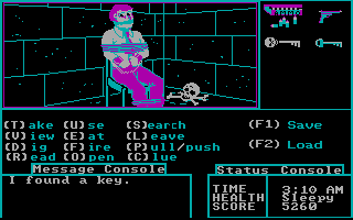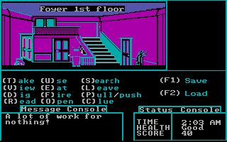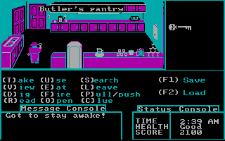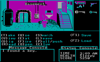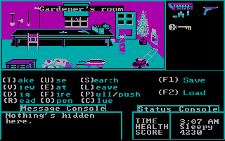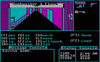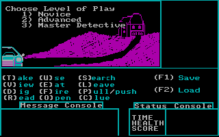 Autant vous prévenir tout de suite : le jeu est sorti en 1988 et est en CGA, avec sa dominante rose qui pique les yeux. Le jeu est sorti en 1989 sur Amiga et Atari ST et a surclassé la version initiale. En plus de l'esthétique, vous avez des niveaux de difficulté qui diffèrent peu, des indices qui n'influencent que le score final mais pas la fin du jeu (bonne ou mauvaise) et qui semblent avoir été placés pour allonger la durée de vie. Les déplacements sont aléatoires et la caméra est mal gérée, bref le jeu est bancal de bout en bout.