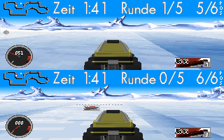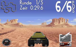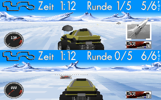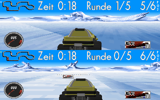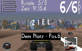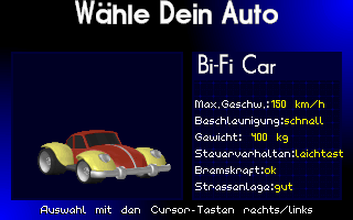 PrésentationNous voici en présence d'un jeu publicitaire pour la marque de saucisses Bi-Fi, et plus précisément du troisième opus d'une véritable saga, qui a commencé par deux jeux d'aventure, et se clôt avec ce jeu d'arcade. Seul ou à deux joueurs en écran splitté, vous allez parcourir neuf circuits dans des environnements différents, du désert aride à la banquise, de la jungle luxuriante à la jungle urbaine.
