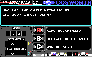 Pour le jeu proprement dit, il entre en concurrence avec des jeux de course de cette année 1988 comme out run, Turbo Cup ou encore test drive. Mais à la différence de ses devanciers, celui-ci est une vraie simulation. Le clavier permet de jouer avec les flèches (haut pour accélérer, droite et gauche, bas pour freiner, retour pour passer les vitesses et W pour aller au magasin quand vous avez fini une course et que vous avez gagné de l'argent). Si vous avez un joystick ce sera mieux bien évidemment !