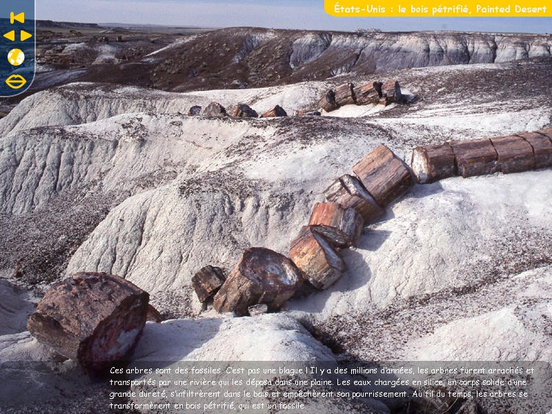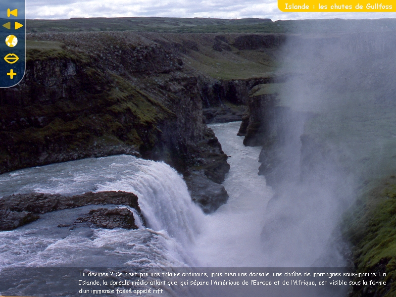 Cerise sur le gâteau, le logiciel est simple à lancer (je l'ai testé sans aucune difficulté sous Windows 2000 et sous XP). Il est aussi très simple à utiliser. On a un menu général d'où on accède aux différentes rubriques. On a aussi un petit menu de commandes (un triangle situé au coin inférieur gauche de l'écran) qui se déploie et à partir duquel on peut commander le son, faire apparaître ou disparaître le sous-titrage des voix, faire une copie d'écran et, bien sûr, retourner au menu général. Je l'ai fait apparaître à titre d'illustration sur les deux copies d'écran intitulées Calendrier.
