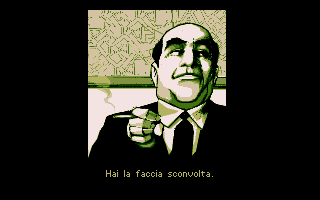 Un gameplay identiqueSi vous avez déjà joué aux précédents Dylan Dog, le moteur n'a pas varié d'un iota, et les commandes sont quasi identiques (à part CTRL + C pour retourner sur le bureau DOS). Vous allez résoudre des énigmes en sélectionnant des items de dialogues, en dénichant des clés et des artefacts, et vous allez déambuler dans des zones labyrinthiques (le cimetière puis Cutthroad, ville remplie de zombies et de spectres). De temps à autre, un code de sécurité sera à rentrer en choisissant les deux images manquantes, et les codes sont déposés sur la galerie d'images de cette fiche (rubrique Artworks). Chaque fois que Dylan meurt, un Continua est proposé (un seul par partie). Le reste est strictement pareil aux précédents jeux pour le gameplay.