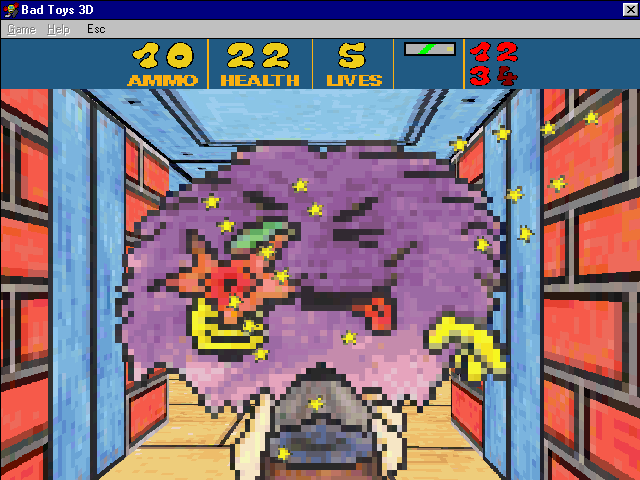 Les ennemis sont évidemment des jouets, du pacman au rire mauvais au Picsou psychopathe armé d'un fusil à pompe.
