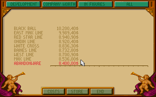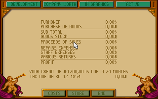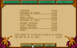 L'âge d'or des jeux du transportAu début des années 90, les jeux de gestion avaient le vent en poupe. Les développeurs délaissaient progressivement la gestion de tableurs à peine améliorés afin de proposer une expérience vidéo-ludique plus riche. Pour donner le sentiment d’expansion, sans s’embarrasser d'un scénario poussé, quoi de mieux que de proposer une carte (vaste si possible) et un défi économique ambitieux. La gestion des flottes commerciales représentait un bon moyen de mélanger tous ces ingrédients et le début des années 90 a vu bon nombre de titres qu'il serait vain de tous énumérer. Citons néanmoins à titre d'exemple, les emblématiques Railraoad Tycoon ou encore Transport Tycoon,Ports of Call, The Patrician mais aussi les moins connus Merchant Colony, A-Train... A cette liste, deux choses peuvent vous frapper : le nombre de logiciels qui ont reçu un abandonware d'or car pionniers dans leurs domaines, et de l'autre une question fondamentale : vous êtes plutôt train ou bateau ? 1869 répond par la seconde à la dernière question. Pendant la fin de l'âge d'or des bateaux clippers, c'est à dire des voiliers géants, vous allez créer un empire maritime. Vous choisissez classiquement votre port d'attache, le nombre de concurrents... La course à la richesse est lancée.