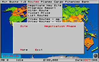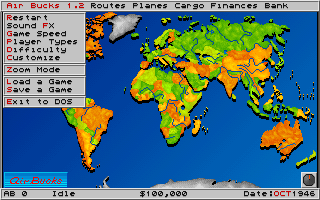 En 1992, le genre des simulations économiques recevait un succès critique et commercial appréciable poussé par des locomotives commes Railroad Tycoon. Le genre permettait de prendre les commandes d'une station de Télévision comme dans Mad TV (mon jeu fétiche je l'avoue) mais le plus simple restait encore de rester dans le transport à l'image de Transport Tycoon. Il restait toutefois des secteurs à explorer comme présider à la destinée d'une compagnie aérienne. Les préoccupations écologiques étant peu ou prou inexistantes à l'époque, les développeurs s'engouffraient joyeusement dans la brèche. C'était Detroit pour l'automobile ou encore Air Bucks pour l'avion. Dans ce dernier jeu en effet, vous êtes en charge d'une compagnie aérienne. Vous démarrez au soleil de Miami avec un douglas DC3. L'avion avait acquis une solide réputation au cours de la seconde Guerre Mondiale. Beaucoup avaient été vendus par l’armée américaine au secteur civil. Ce n'est pas le seul emprunt historique crédible puisque le prix du carburant va évoluer en prenant en compte l'inflation. Doté de grandes ambitions, le jeu intégrait dans son algorithme différents paramètres comme la distance, la vitesse de votre avion... et déterminait ainsi les parts de marchés face à vos trois concurrents. De même, ce n'était pas moins de 128 aéroports qui étaient disponibles soit bien plus que les concurrents de l'époque tous jeux de gestion confondus.