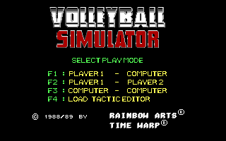 Dans les années 80, l'Italie et la France avaient connu un engouement soudain pour le volleyball. La raison en était l'adaptation en dessin animé d'un manga japonais. Les plus anciens auront déjà appuyé sur le buzzer : il s'agit de Jeanne et Serge. Tout le monde rêvait de faire des smashs à l'image de l'héroïne. Bien peu furent ceux qui y parvinrent. Aussi, pour se rattraper, il restait les jeux vidéo. Les simulations étaient concomitantes avec l'arrivée des consoles de salon à l'image de Realsports Volleyball sur Atari 2600. Chaque année apportait son lot de progrès technique et les simulations s'amélioraient lentement. Volleyball Simulator représente une transition entre les premiers essais et des jeux plus aboutis à l'image de Kings of the Beach et Beach Volley. Les aspects techniques sont dans la droite file de ce que l'on peut attendre de jeux sortis en 1987. Les graphismes sont honorables. La fluidité des animations est correcte. Toutefois, le gameplay aurait mérité un autre traitement pour passer les années sans encombres. Les amateurs de rétros seront ravis et regarderont avec indulgence les défauts du logiciel.