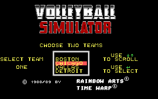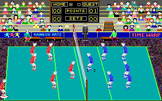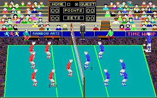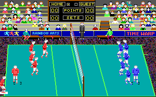 Au commencement était le manga ?Dans les années 80, l'Italie et la France avaient connu un engouement soudain pour le volleyball. La raison en était l'adaptation en dessin animé d'un manga japonais. Les plus anciens auront déjà appuyé sur le buzzer : il s'agit de Jeanne et Serge. Tout le monde rêvait de faire des smashs à l'image de l'héroïne. Bien peu furent ceux qui y parvinrent. Aussi, pour se rattraper, il restait les jeux vidéo. Les simulations étaient concomitantes avec l'arrivée des consoles de salon à l'image de Realsports Volleyball sur Atari 2600. Chaque année apportait son lot de progrès technique et les simulations s'amélioraient lentement. Volleyball Simulator représente une transition entre les premiers essais et des jeux plus aboutis à l'image de Kings of the Beach et Beach Volley. Les aspects techniques sont dans la droite file de ce que l'on peut attendre de jeux sortis en 1987. Les graphismes sont honorables. La fluidité des animations est correcte. Toutefois, le gameplay aurait mérité un autre traitement pour passer les années sans encombres. Les amateurs de rétros seront ravis et regarderont avec indulgence les défauts du logiciel.