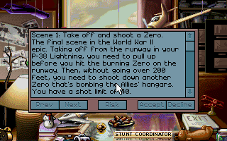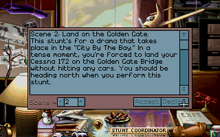 Stunt Island va bien au delà de ce scénario original, et vous propose d'autre part de tester librement toutes les machines volantes (du biplan au canard en passant par le ptérodactyl...), créer vos film d'action, et autres folies.