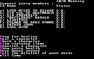 Bienvenue dans Ultima... Ah non ? Vous êtes sûr ? Bon je sais, j'ai déjà utilisé cette entrée en matière mais j'avoue mon manque total d'inspiration face à un clone de l'un des RPG les plus célèbres. Il est vrai que le titre est une alternative à Ultima III sorti en sorti en 1983. À ceci près que Wizard's Crown est sorti trois années plus tard avec un coloris criard. Nous nous trouvons donc dans un RPG à l'occidentale avec la création d'une équipe allant jusqu'à 8 aventuriers en quête d'une couronne magique.