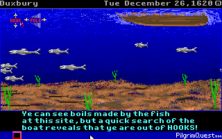 Histoire d'agrémenter le jeu et d'éviter qu'il soit un titre de pure gestion, des mini-jeux sont présents pour les différentes activités : la chasse (si vous avez des fusils et de la poudre, la pêche (des filets sont nécessaires et peuvent être achetés à vos voisins) et le transport du bois (pour vos habitations entre autres). La chose n'était pas inhabituelle à l'époque comme le prouve Iron Lord entre autres mais cela était plus rare dans les jeux de gestion. Cette dernière phase sera plus ou moins longue en fonction de votre capacité à survivre. Une partie sera sans doute nécessaire pour comprendre comment acheter, à qui... Une fois les principes acquis, vous pourrez durer le temps de voir repartir le Mayflower avec éventuellement des fourrures et d'autres objets que vous pourrez vendre. Sur le thème de la colonisation, plusieurs logiciels étaient sortis au milieu des années 90 : Colonization, Merchant Colony, Discovery : In the Steps of Columbus... Pilgrim les a précédés. Il est dans une bonne moyenne et vous changera un peu si vous avez déjà bouclé les titres mentionnés ci-dessus.