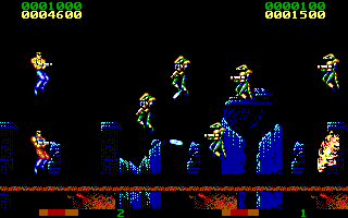 Car autant le dire maintenant, cette conversion PC de Forgotten Worlds est un gros ratage. Les points positifs : on peut toujours jouer à deux, le scrolling est rapide (comme quoi ce n'est pas si difficile à programmer) et on peut choisir ses touches au clavier. Les points négatifs : toujours quatre niveaux seulement, et courts en plus, avec quelques vagues d'ennemis pas du tout impressionnants, graphismes en EGA uniquement (et laids), pas un seul son, et la touche de tir qui tire quand elle le veut bien. Pour couronner le tout, ça plante sous DOSBox quand on veut émuler un Tandy : s'il y avait bien une incompatibilité, c'était mauvais signe quand on visait le marché américain. On a vraiment l'impression de voir une beta d'un jeu en cours de développement, qui aurait été sortie à l'arrache. À éviter, donc.