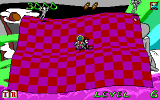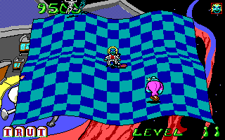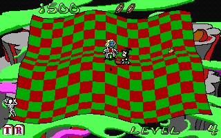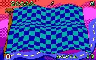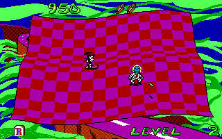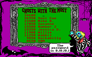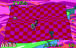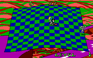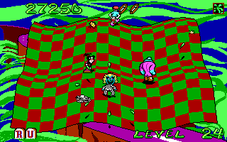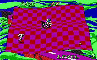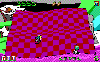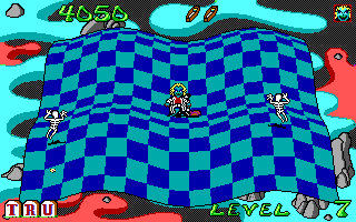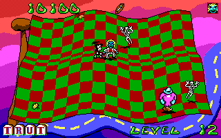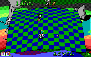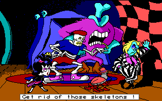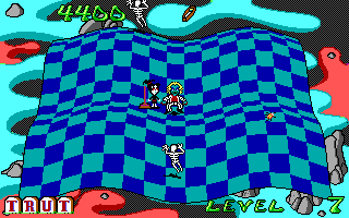 Le jeuLe héros du titre est Beetlejuice qui se retrouve dans un carré coloré formé de dalles. Vous incarnez cet antihéros et vous devez tirer sur des fantômes jusqu'à ce qu'ils deviennent un tas d'os. Ensuite, votre femme de ménage vient avec son aspirateur enlever le tout. La difficulté est assez faible, voire ridiculement basse, au cours des premiers niveaux. C'est une volonté des éditeurs mais cela tranche avec les habitudes de l'époque.