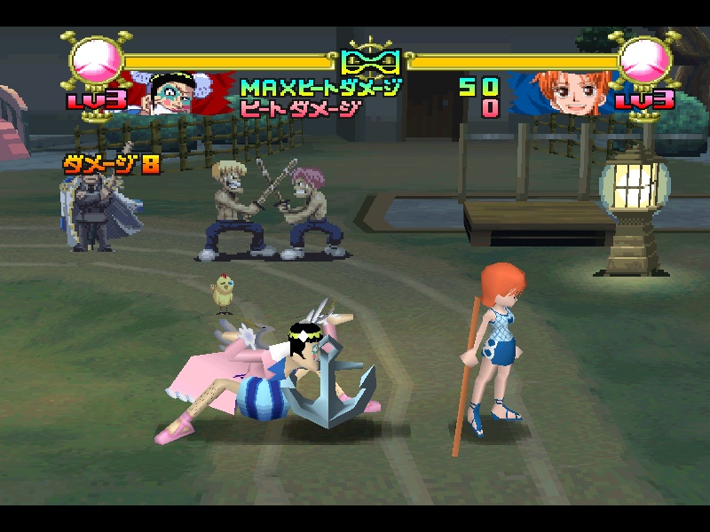 ConclusionJamais sorti en France à l’époque, One Piece Grand Battle 2 reste le fond de tiroir du jeu de combat, à destiner uniquement aux fans acharnés du manga. Pas mauvais au point de mériter un Abandonware de Plomb, mais entre les contrôles complexes sur clavier, l’absence de traduction et son obsolescence, ça ne casse pas trois pattes à un canard (bien que celui jouable dans le jeu n’en ait que deux…)