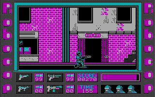 A la fin des années 80 paraissaient 2 titres radicalement différents : l'un produit par Data East et l'autre par Ocean qui nous occupe ici. Ce qui frappe ici, c'est la médiocre qualité des graphismes en CGA par rapport aux autres supports de la franchise. Robocop est un Shoot-them-up à défilement horizontal classique. Il est aussi agrémenté de mini-jeux et d'épreuves. Ce jeu de tir possède des contrôles assez difficiles mais dans la droite file de titres contemporains. Vous risquez fort d'être bloqué dès les premières minutes.