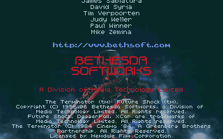PrésentationAprès 2 films (le début et sa suite), des jeux vidéos de genre différent (shoot, plateforme, échecs), des figurines, des jeux de société, voici qu'en 1996 Bethesda Softworks débarque avec un nouveau titre de la saga à gros sous : "Terminator"... Le nouveau né : The Terminator : Future Shock !