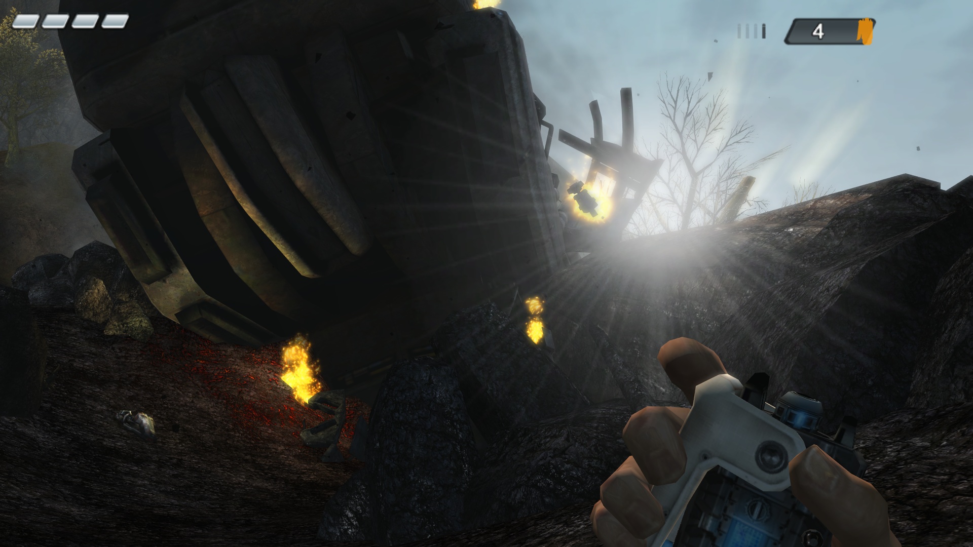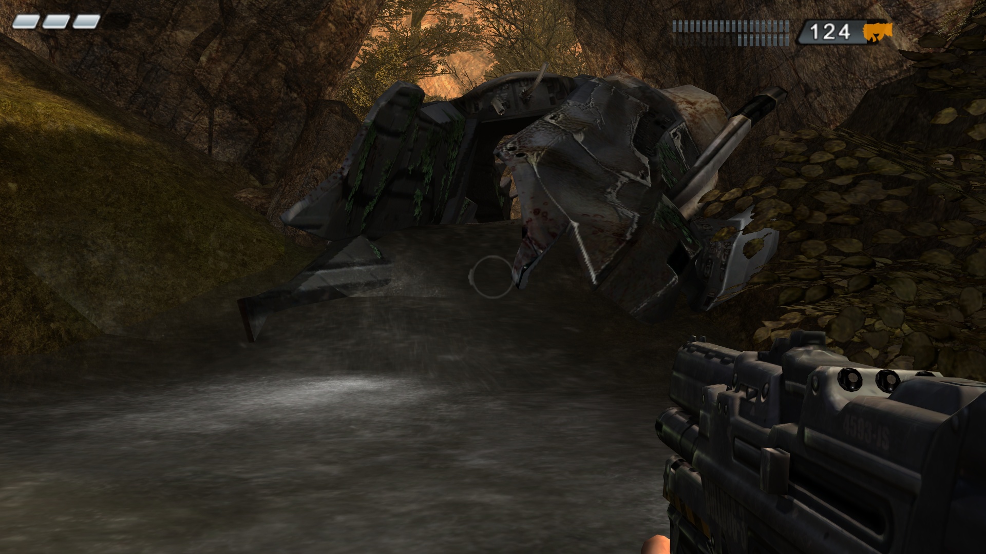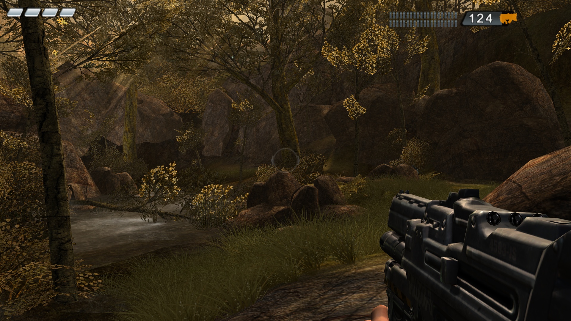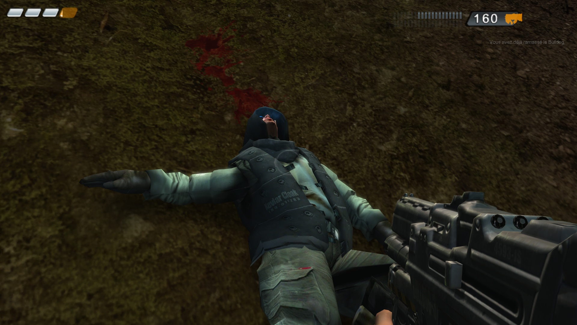 Les environnements, bien que jolis, sont assez génériques et n’ont pas vraiment d’identité propre, de même que les ennemis qu’on affronte. Par contre, le jeu est très joli pour un titre de 2005, et les modèles des armes ainsi que des ennemis sont assez détaillés. On peut noter aussi une bande-son et des bruitages de bonne qualité, ainsi qu’un doublage français qui ne donne pas envie de s’arracher les oreilles, ce qui est un bon point quand on voit à quel point certains jeux ont connu des errances dans leur localisation française. Le manque d’identité du jeu n’est d’ailleurs pas aidé par le manque d’unicité de l’arsenal des joueurs, qui est extrêmement classique et ne propose pas d’armes uniques et originales qui pourrait facilement faire sortir le jeu de l’océan que constitue la concurrence en matière de FPS au milieu des années 2000. Reste l’utilisation de véhicules pour renouveler un peu l’intérêt du mode solo, avec une conduite plutôt bien pensée, bien qu’on sente que le jeu ait davantage été pensé pour la manette que pour la configuration Souris-Clavier. C’est d’ailleurs manette en main que j’avais découvert Pariah pour la première fois lors de sa sortie sur XBOX, et cette fiche fut l’occasion de refaire le jeu, mais cette fois-ci sur PC, et force est de constater que la manette reste franchement plus agréable. Reste finalement le mode multijoueur, avec les classiques deathmatch, capture du drapeau et roi de la colline, ainsi qu’un éditeur de cartes plutôt bien fichu, donnant suffisamment de liberté aux joueurs créatifs pour y passer un peu de temps, mais compte tenu de la carrière très brève du jeu, pas sûr que beaucoup de gens s’y soient essayé…
