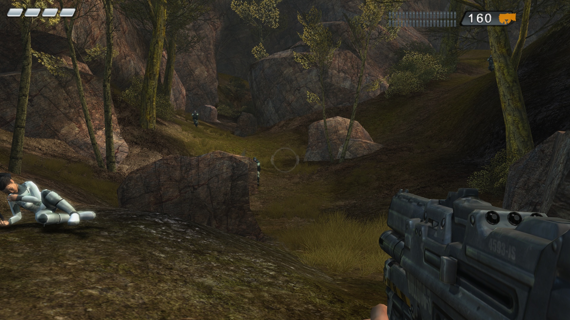 Le scénario de Pariah est… décousu. L’introduction du jeu ne donne que très peu d’informations sur l’univers, le contexte… Et même la fin du jeu laisse énormément de questions sans réponses. Ma théorie est que Digital Extremes souhaitait développer l’univers de Pariah au travers d’autres jeux, mais cette vision n’a jamais pu se concrétiser, laissant un jeu avec un scénario qui, sans être bancal, aurait mérité un développement plus poussé. Après, je ne peux pas en vouloir au scénariste de ne pas avoir eu assez d’opportunité de développer le scénario puisque le mode solo se boucle en à peine cinq heures… Ce qui pour un mode solo d’un FPS en 2005 est peu, vraiment très peu. Pour rappel, au moment de la sortie de Pariah, des titres comme Doom 3, Halo & Halo 2 ou même le premier Painkiller sont déjà sortis et ont montré qu’on peut produire un scénario et un environnement narratif de qualité sur un FPS en 3D, et voir à quel point le mode solo de Pariah est faible et vraiment décevant.