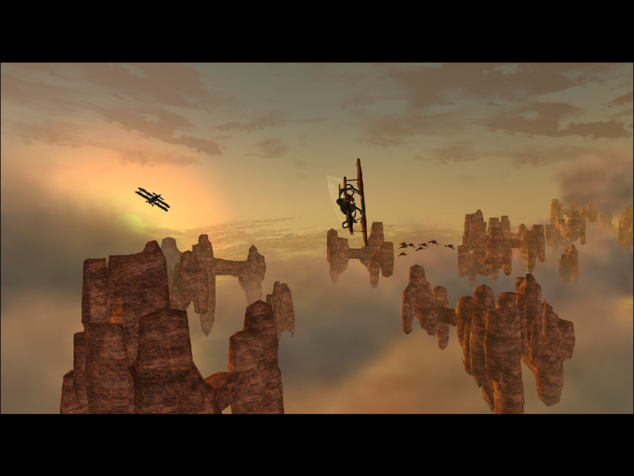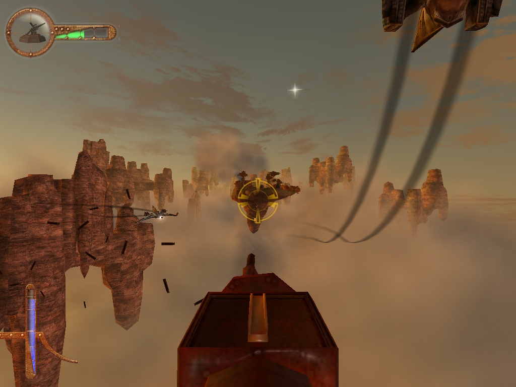 Malheureusement, je vais devoir tempérer ce tableau jusqu’à présent dithyrambique, car Project Nomads n’est pas sans défaut, et le principal est sa linéarité couplée à la répétitivité de son gameplay. Il est vrai que, concrètement, on fait toujours la même chose d’une mission à l’autre dans le mode solo, et l’expérience peine à se renouveler au fur et à mesure que l’on progresse dans l’histoire. Ça en devient presque frustrant sur le long terme tant le concept du jeu est prometteur, et j’en regrette presque que Radon Labs n’ait pas davantage diversifié ses mécaniques ainsi que ses objectifs de gameplay. Il convient cependant de rappeler qu’il s’agit du second jeu du studio, et de sa première expérience avec un moteur 3D, ce qui pourrait expliquer pourquoi le titre est si répétitif, et c’est un défaut qui pourrait ne pas en être un qui si, comme moi, vous accrochez au gameplay de Project Nomads. Et attention, le gameplay du jeu est très efficace, avec des commandes intuitives qui se seraient soit dit en passant très bien adaptées sur une manette, ce qui rendrait presque dommage l’absence d’une quelconque version console du jeu (la XBOX de Microsoft se serait par exemple très bien prêtée à un portage, et son architecture proche des PC haut-de-gamme de l’époque aurait parfaitement rendu justice à Project Nomads).
